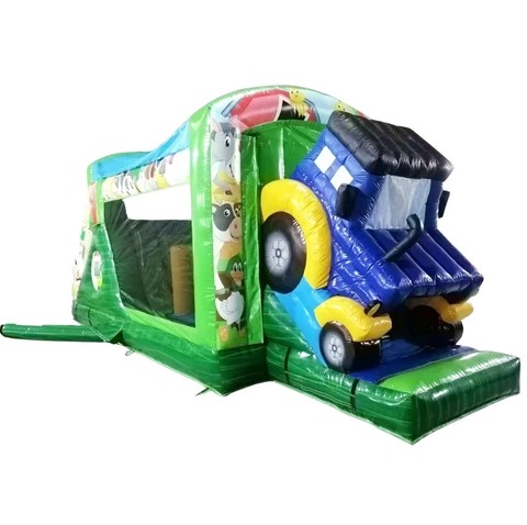Carrera de obstáculos de tractor 3D de 30 pies, Tobogán combinado de Castillo de salto inflable al aire libre, casa de rebote inflable de tractor de Castillo de salto