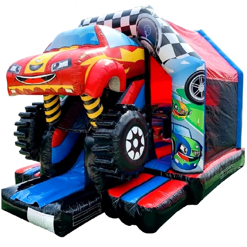 Commerciële Opblaasbare Monster Truck Bounce Huis Opblaasbare Auto Vorm Springkussen Glijbaan Combo